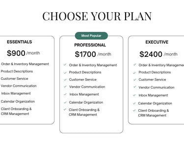 Whether you’re an emerging, growing or established brand, we offer flexible support options designed to help you stay organized and supported in your business. From one-time projects to ongoing support, each service is designed to help you stay organized, manage operations smoothly, and focus on what you do best.